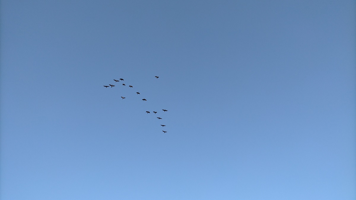 編隊を組んで飛行する海鳥。 多分海鳥。多分。