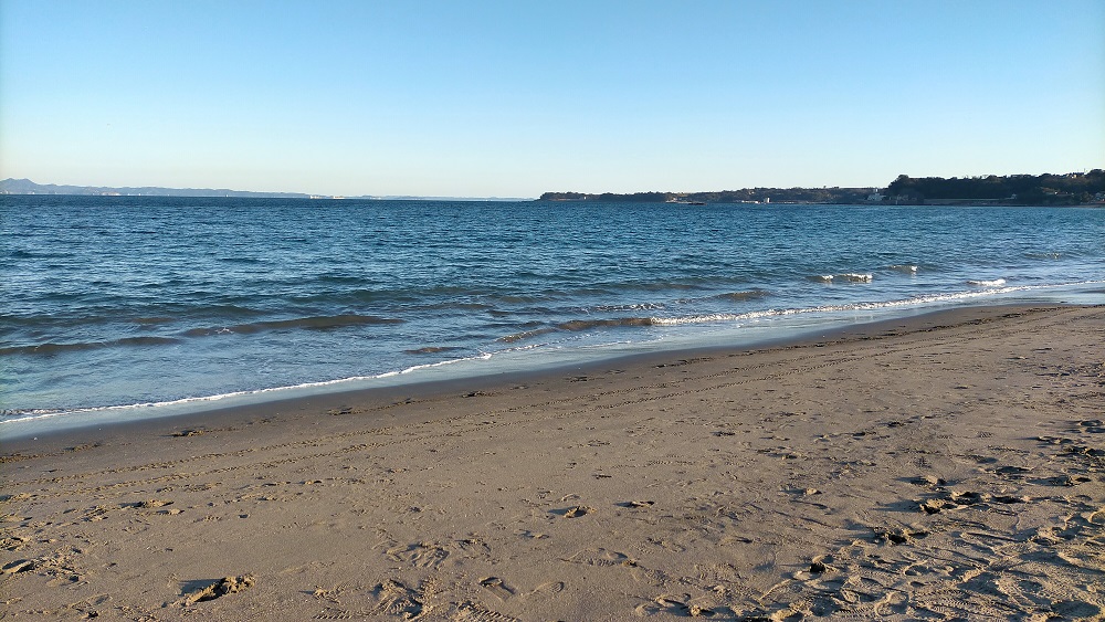 海の向こうに見える(左前方)のが、千葉県房総半島でございます。