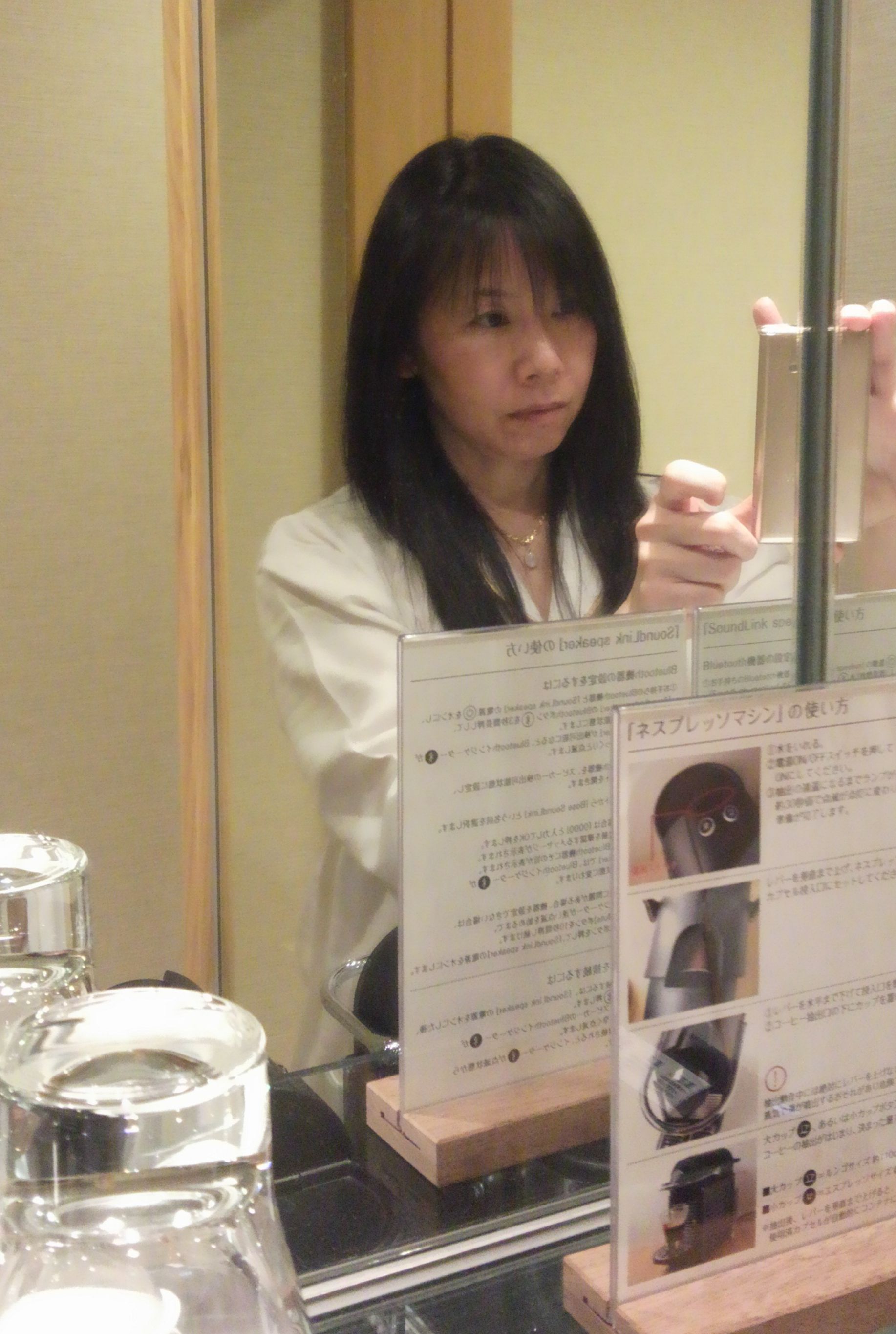 部屋のエスプレッソマシンの前にある鏡で