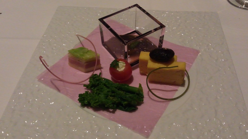 前菜。 ガラスの器に入ってるのはホタルイカちゃん。