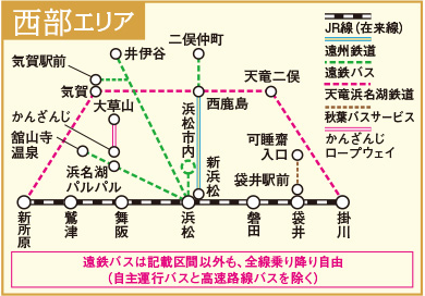 それぞれの周遊エリアの鉄道やバスが2日間乗り放題になります。