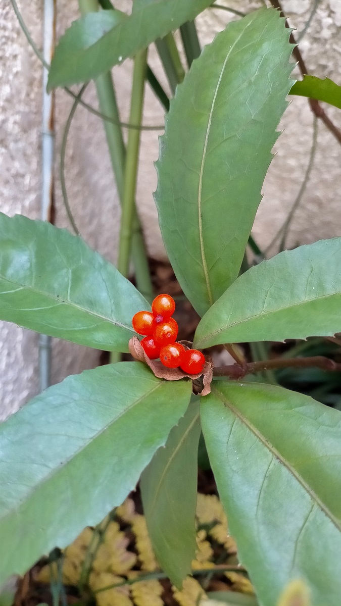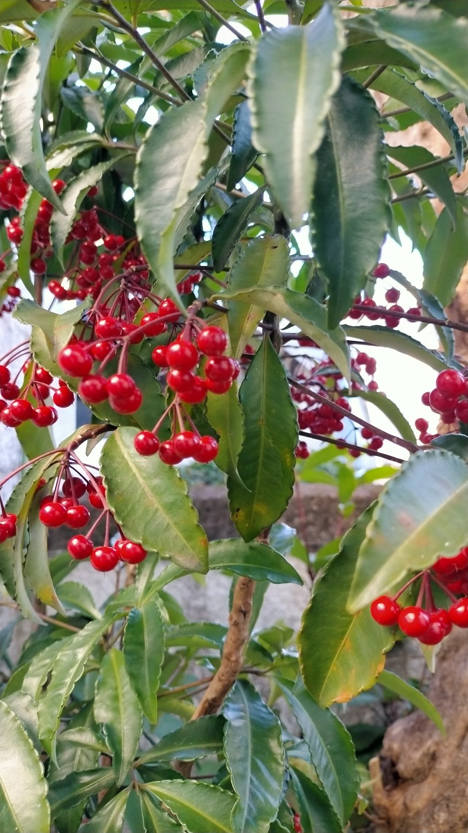 PS. 実家の万両と千両。並べると区別つけやすいね。