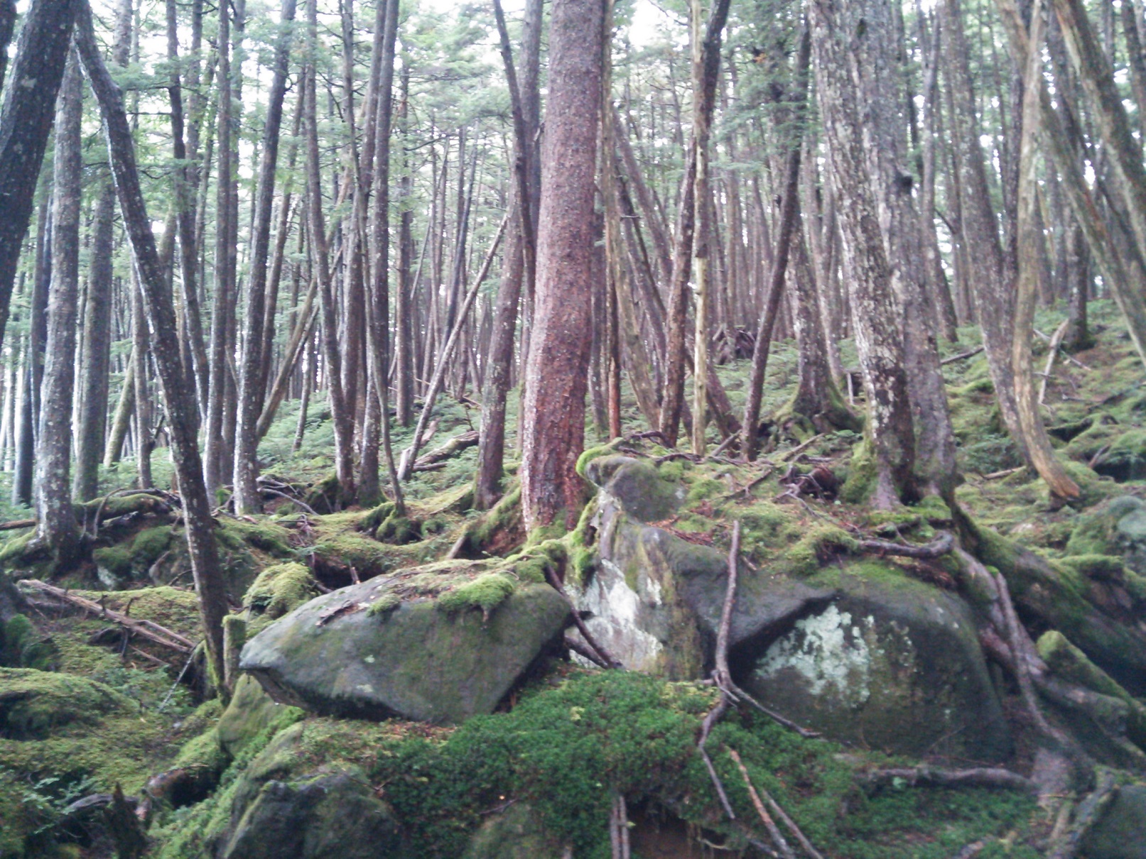 八ヶ岳の白駒池の周辺を散策すると見られる原生林の苔である。