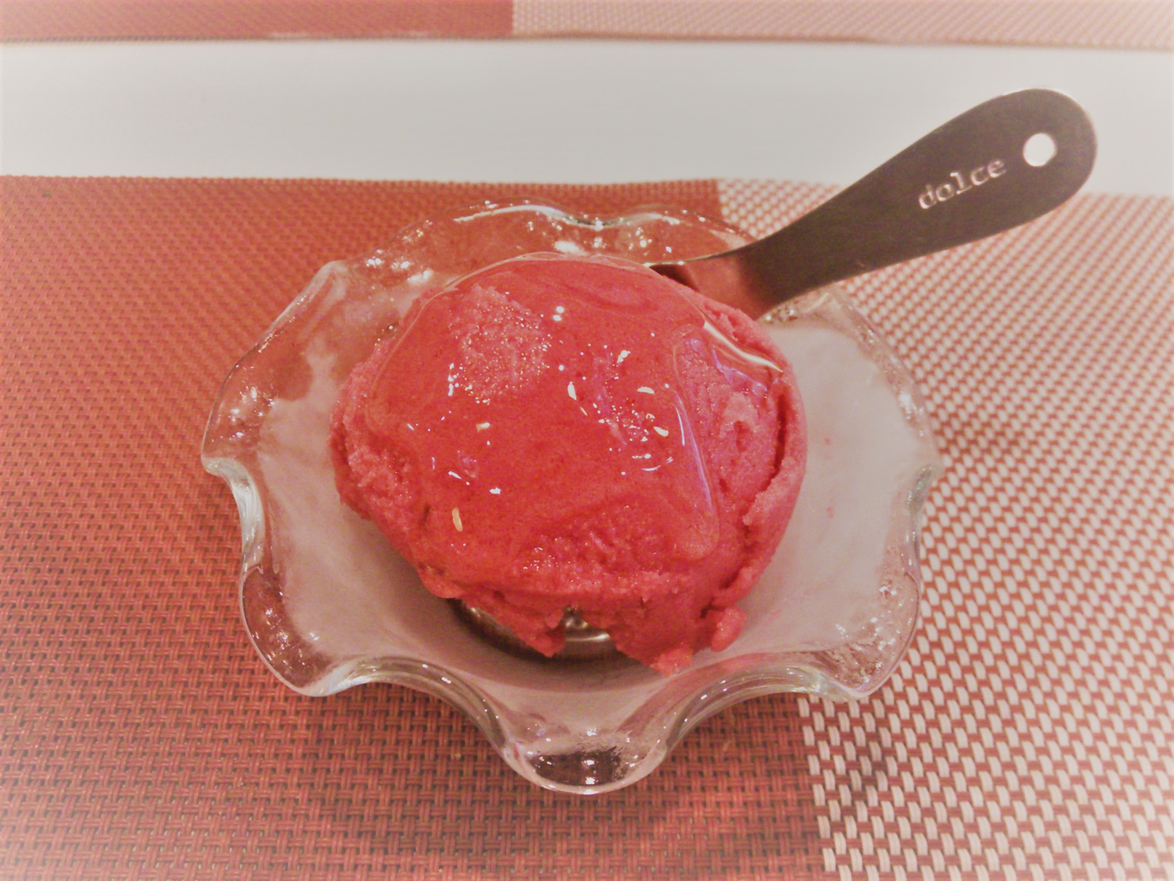イチゴのシャーベット。着色料なしでこの色! 美味しいよ!
